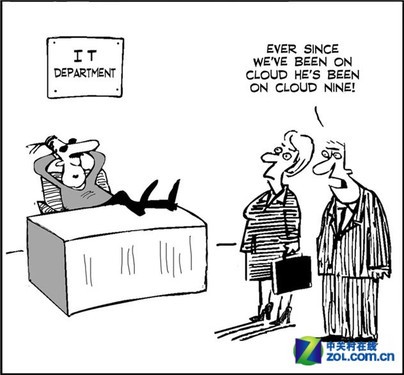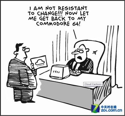 云计算代表了什么,在编者看来它代表了先进的生产力,先进的IT理念;它还衍生出来一种新的经济学理念——云经济。云计算让投资家趋之若鹜,让华尔街的IT精英午夜狂奔。对于用户来说,云计算帮助企业节约IT资源,帮助企业自由调度IT资源,并且实现无处不在的移动办公。 但云计算也很有可能让IT Manager赋闲在家,也有可能让数据中心成为黑客的众矢之的。并且,凡是与“云”或者“Cloud”相关的域名均已经“四大皆空”。虽然,随时随地办公确实很方便,但云计算也让人们难以分清哪里是家哪里是办公地,工作和生活难以分开,有时候也会让人很疲倦。最近编者国外一网站上,看到一系列有关云(如阿里云)计算的漫画。作者通过这十副漫画幽默地表达了自己对于云计算的一些看法,在此编者翻译出来并且稍加解析这些漫画,供各位网友参考。 第一副图,英文原文“So that's what happens when you reach the limit of your free storage!”。中文意思可理解为:当你到达免费存储的限额的时候,就不得不为接下来的事情买单了。 图一 编者认为,天下没有免费的午餐!云服务初次使用免费,或免费送你一些存储空间和服务,都是一些新产品推广初期的手段,任何产品都不例外。只不过,我们要小心,若你不确定在这朵云计算上存储太久,或者有些疑虑,那么请不要将关键数据存储在其上,否则真的丢失了核心数据,你就欲哭无泪了。 第二幅图,英文原文:“Thanks to cloud technology,Nigel can not only work from home,but he can work from other people's homes as well.”。中文可理解为:感谢云技术,Nigel不但可在自己家里工作,而且还能在其他任何人家里工作。 图二 编者的理解是,云计算让我们感到痛并快乐着!越来越先进的科学技术是让我们更幸福,还是更痛苦。曾经有人调查过,随着电脑、移动电话及互联网的发达,人们的幸福感随之下降,人们也更加容易在高速发展的日子里感到体力不支,身心疲惫。云(如阿里云)计算,让你可随时随地都可以进入工作状况,也将随时打断你的休闲和娱乐生活。有时候,难免招来你的妻子和孩子的不满,这样的家庭很难说是幸福的。 第三幅图,英文原文:“I am not resistant to change!!!Now let me get back to my Commodore 64!”中文意思可这么理解:我不反对创新,但我还现在还是想用回我的Commodore 64。 据编者了解,其中“Commodore 64”是Commodore International在1982年8月发行的8位元的家用电脑,当年这台计算机号称是"计算机中的大众汽车",让许多家庭第一次了解了计算机的概念。以595美元发售,多年间热卖2200万部,超过了其他任何PC型号,平台游戏也多达6000余种。 这款计算机的特点在于所有的东西都被整合到键盘内,比如用以存储的声磁带、 20KB的ROM、64KB的RAM。作为Commodore VIC-20以及Commodore MAX Machine的后继者,Commodore 64具备64 kilobytes(65,536 位元组)RAM、以及比当时IBM PC兼容机优胜的声音和图像。在这台主机上曾发行过一些游戏,但因为Commodore 64机能所限、画质不好、音乐也不算动听,慢慢退出市场竞争。 图三 编者认为,当前的云计算,不是不够创新,也不是因为性价比不高,而是因为并不是企业当前最急需的。特别是当前全球经济环境都比较恶劣的情况下,几乎所有的企业,最先寻求的都是业务上的突破,而很可能最后才去考虑IT上的创新。很多企业老板,就会如图片上这位一样的态度,云计算确实很好,但仍难以让企业断然放弃旧设备。 第四幅图,英文原文“Welcome to this first ever university course for cloud computing...”中文可以理解为:欢迎到这个有史以来的第一个大学课程:云计算。结果老师的讲台下面空无一人,有的只是一朵朵的云。 图四 编者认为,此幅图描述了未来的教育场景:未来的老师将会很难和学生见上一面,学生和老师的沟通主要通过互联网来实现。云计算将会彻底改变传统的教育模式。不过,这种改变很可能让我们再也难以见到珍贵的师生关系,人与人之间的往来不是你“云”就是我“云”的。想来,就有点可怕。 第五幅图,英文原文:“Should you migrate to the cloud?Well,I have.”中文可以理解为:你会迁移到云上来吗?嗯,我已经上来了。 图五 编者想到了钱钟书大爷的一本著名小说《围墙》中有一句广为流传的话,外面的人想进来,里面的人想出去。当前,云计算对于政府、一些不明真相的国企及国内国内跟风的中小企业来说,就是一个“海市蜃楼”,看得见的是别人的,并非自己的目标。很多机构在跟风中迷失了自我。当然,编者也不希望这句话适用于云计算:云下面的人想上去,在云上面的人下骑虎难下! 第六副图,英文原文:“How secure is this cloud of yours?Mr Gaddafi may need to hide there quite soon.”中文可解释为:你的云有多安全?卡扎菲先生也许很快需藏身于此。 图六 编者对此的理解是,谁能敢保证卡扎菲的安全呢?不能保证!现在卡扎菲都已不存在(根据官方新闻报道)。所以,当你被告知云计算有多安全的时候,用户必须做好准备,一旦出了意外之后的解决办法。 第七幅图,英文原文:“I use this to explain the cloud to my clients——IT's a bit battered because I usually end up hitting them with it!”中文可理解为:我用这张图向客户解释什么是云计算。它有点破旧,那是因为我通常都要用它打客户以结束这次演示。 图七 编者认为,云(如阿里云)计算从一开始就面临着各种各样的定义,IT巨头各说各辞,似乎谁说的都有道理。正因为这样,用户才觉得
