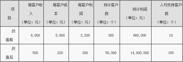 SaaS多租户模式的威力 又三个月过去了,郭靖主导的SaaS多租户模式改造项目开发完毕,杨康忙不迭地算了一笔账: 很明显,由于改造成SaaS多租户后单一成本极大降低,价格亦大幅降低,自然可以吸纳大量的付费用户。对比前后的利润增长20余倍,技术支持人员人都可以支持的客户数也增加10多倍,效果非常显著。看过这份表格后,郭靖和杨康不由轻松地畅想起了未来。 郭靖:这回我可腾出更多的人力去提升性能和可伸缩性了,Yeah! 杨康:这回我可多招些Sales去拓展渠道和市场了,哈哈。 经过数据隔离相关改进后,杨康、郭靖的CRM系统更进一步,已经实现SaaS成熟度模型Level 3(多租户)阶段的主要特征。 上一条: 专家质疑云计算没有成熟的商业模式? 下一条: 怎样转化成SaaS多租户模式