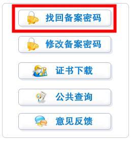 备案密码在线找回的操作步骤: 第一步:请您登录工信部系统:www.miitbeian.gov.cn,在页面下方“政务公开”选择备案号所在省份; 第二步:登陆当地通信管理局页面后,点击右下方“找回备案密码”按钮; 第三步:按要求填写备案时的主体备案号及证件号码;(备案/许可证号:填写您主体的备案号,无需填写后面的"-1";证件类型:选择您之前备案的证件类型;证件号码:填写之前备案的证件号码) 第四步:备案密码会直接发送到您之前备案的手机和邮箱中,请您查收。 备案密码线下找回的操作: 如您已经无法正常使用之前备案的手机和邮箱,您可在当地通信管理局页面左下方“相关下载”处下载备案密码找回申请表,表格中有填表的要求以及提交管局的方式,请您下载表格后可自行查看并填写。 上一条: 域名的备案号该怎样注销? 下一条: 聚石塔用户申请备案服务号的方式?