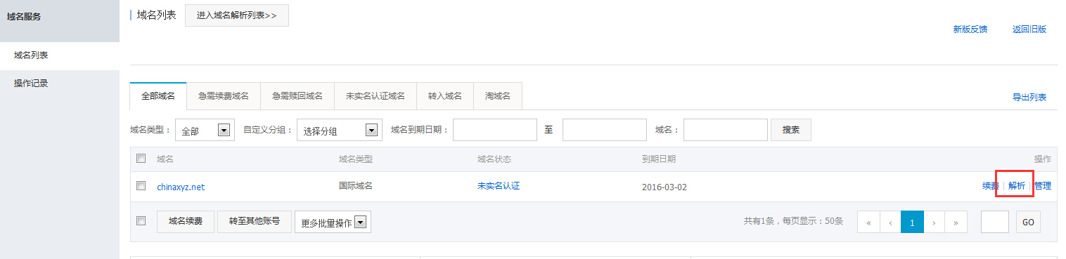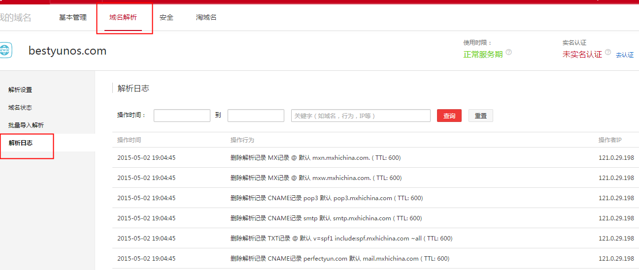 选择域名解析,进入解析日志,就可以看到域名解析日志