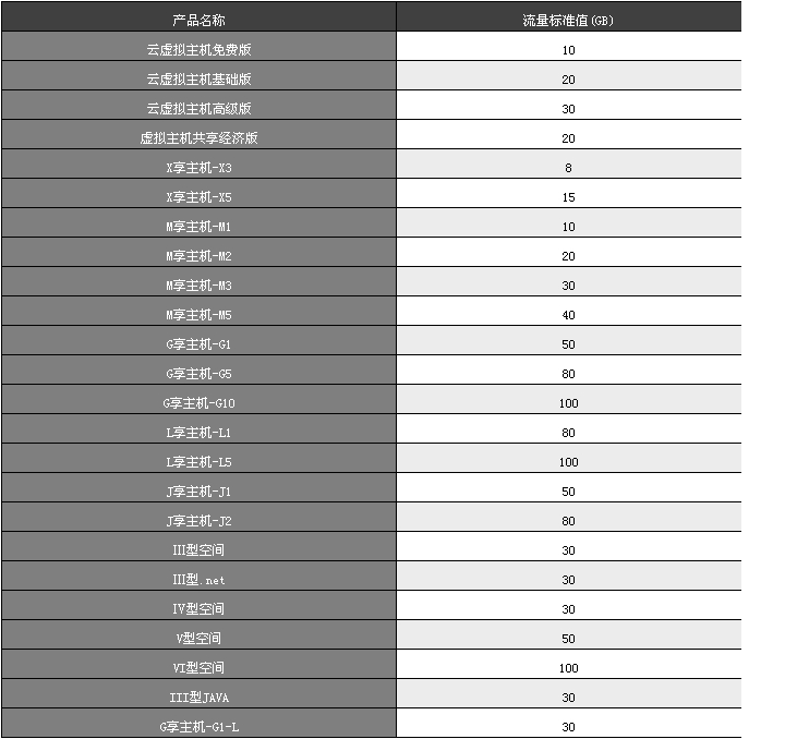 一、各款型号主机的标准流量是多少? 限制流量只是对个别超大流量用户的限制,是为了更好的为客户服务,保证服务器的稳定运行,保护普通客户的权利。 二、流量标准的具体换算关系如何计算? 具体的换算关系为: 1、10G流量大约相当于日访问量700次。 2、如果客户网站提供下载,如提供一个5MB的文件下载,那么每下载一次即产生5MB的流量。 三、如何我的流量使用情况? 万网会在您的流量耗用达到50%时向您发送邮件提醒,达到80%时向您发送邮件和短信提醒。若您的流量已经全部用完,我们会关停您的站点,同时发送短信和邮件通知。建议您在主机管理控制台中绑定自己的常用手机和邮箱,并及时查看,避免因为流量耗尽影响您网站的运行。 四、客户网站出现流量超标后如何处理? 如果客户网站出现流量超标情况,建议通过主机管理控制台的访问统计报告分析超流量原因,并根据原因做有针对性的操作。超流量的类型可以分为以下几种情况: 正常流量: 如果您的网站访问量很大,就会产生较多的流量,当流量不足时建议您及时到会员中心购买流量或者升级到轻云服务器,轻云服务器不限制流量; 异常流量原因分析: 1、开源建造软件漏洞:一般开源的建站软件如果存在漏洞,很容易被黑客利用发起攻击,导致网站流量过大。目前已经发现织梦CMS(即dede)存在严重漏洞。 2、网站被盗链:如果您的网站在线人数不是很多,那么就应该检查您站点内的内容,是否有FLASH、下载文件、图片、电影、音乐等比较引人注目的文件被别人盗链使用。 建议解决方案:如果发现可疑的被人盗链接的文件,请修改对应的网页文件,禁止盗用IP访问您的网站;或者彻底删除不必要的大文件。 3、网站包含音频,视频文件:如果您网站提供数据下载(如:*.mp3,*.rar,*.zip*.exe等)或者是您的网站提供视频、音乐等文件的播放或下载(如:背景音乐,宣传广告,flash 等),因为此类文件很大,会耗费大量流量; 建议解决方案:删除不必要的大文件,如果因客户业务需要不能删除,建议客户购买流量或者升级到轻云服务器,轻云服务器不限制流量; 4、网站做过搜索引擎推广:如果您在某些搜索引擎上做过某些推广或宣传,搜索引擎会大量访问您的网站,从而造成大流量,请您做出相应限制或升级主机。 建议解决方案:修改robots文件,限制搜索引擎可以访问的资源,但这可能会影响您的网站推广效果,或者升级到轻云服务器; Robots文件修改方法:请百度。robots 文件生成工具,设置搜索引擎不支持访问的内容,以减少流量消耗; 五、主机总是超流量,怎么办? 如果您的主机流量经常超出标准流量,说明您的网站流量比较大: 1、建议您到会员中心购买流量 2、建议您升级到轻云服务器,独享一台服务器的资源,而且不限制流量。 六、主机本月超流量被关停了,下个月1号主机会开通吗? 主机标准流量指的是每月的流量,在每个月初都会有新的可用流量。如果您的主机本月因超流量被关停,下月1号您的主机会自动开通,并获得新的流量; 七、为什么我使用第三方流量统计工具统计的流量比主机管理控制台里面统计的流量小? 我们的流量统计工具是基于网站访问日志统计的,统计了包括网站访问和搜索引擎两种形式的访问流量,是最全面的。 目前市场上有很多种流量统计工具,比如CNZZ,是在网页中植入js统计代码,这类工具只能统计植入js脚本的网页产生的流量,不能统计未植入js的网页流量及音频,视频文件的流量,也不能统计搜索引擎的流量,所以会小很多; 另外还有一些统计工具,比如web log explorer默认只统计网页类型的流量,不统计rar,zip,mp3类型文件;默认只统计网站访问流量,不统计搜索引擎流量; 八、之前没有申请访问统计报告,怎样查看超流量的原因? 建议您在主机管理控制台申请访问统计报告,申请后24小时便可以查看申请日之后的流量报告; 如果您想看申请日期之前的流量分析,请在主机管理控制台下载网站日志到您的电脑,查看您的访问记录;如果您看不懂日志文件,可以借助第三方的日志分析工具分析,比如Expert、Awstats等。 上一条: 主机管理控制台 "访问统计报告" 说明 下一条: 虚拟主机对大流量处理细则