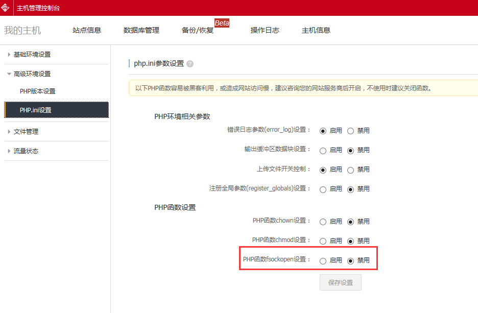 Discuz安装如果提示不支持fsockopen,其原因是PHP的fsockopen函数没有打开。 解决方法: 1.如果您使用的是阿里云ECS服务器,进入到php的安装目录,找到并打开php.ini 文件,找到disable_function 删除其中的fsockopen 重启服务(windows重启iis或apache,linux重启apache或nginx) 后使用探针的phpinfo() 函数测试对fsockopen函数的支持情况。 2.如果您使用的是万网虚拟主机,默认fsockopen函数是关闭的,可以登录【控制面板】->【高级环境设置】->【PHP.ini设置】中进行开启,开启后就能够安装。 上一条: 完整HTTP状态代码的具体说明