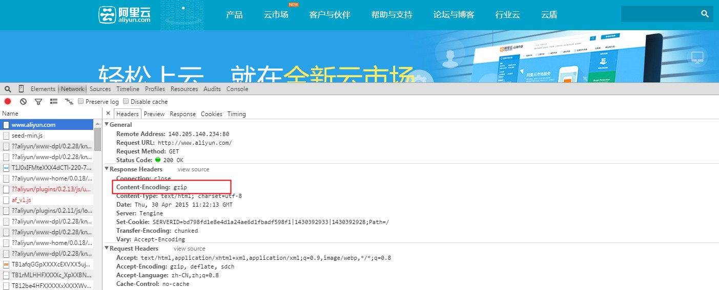 轻云服务器和万网虚拟主机均已经开启了gzip压缩模块。万网Linux主机压缩设置如下: AddOutputFilterByType DEFLATE text/plain AddOutputFilterByType DEFLATE text/html AddOutputFilterByType DEFLATE text/xml AddOutputFilterByType DEFLATE text/css AddOutputFilterByType DEFLATE application/xml AddOutputFilterByType DEFLATE application/xhtml+xml AddOutputFilterByType DEFLATE application/rss+xml AddOutputFilterByType DEFLATE application/javascript AddOutputFilterByType DEFLATE application/x-javascript AddOutputFilterByType DEFLATE application/x-httpd-php AddOutputFilterByType DEFLATE application/x-httpd-fastphp AddOutputFilterByType DEFLATE image/svg+xml 可以通过站长工具http://tool.chinaz.com/Gzips/ 检测(请勿使用临时域名测试,因为临时域名有安全策略,无法正确进行验证)。 或者根据浏览器调试工具(打开网站后按F12)查看Response Headers 中是否有Content-Encoding:gzip 如果有就表示已经开启了gzip压缩。 如下图测试: