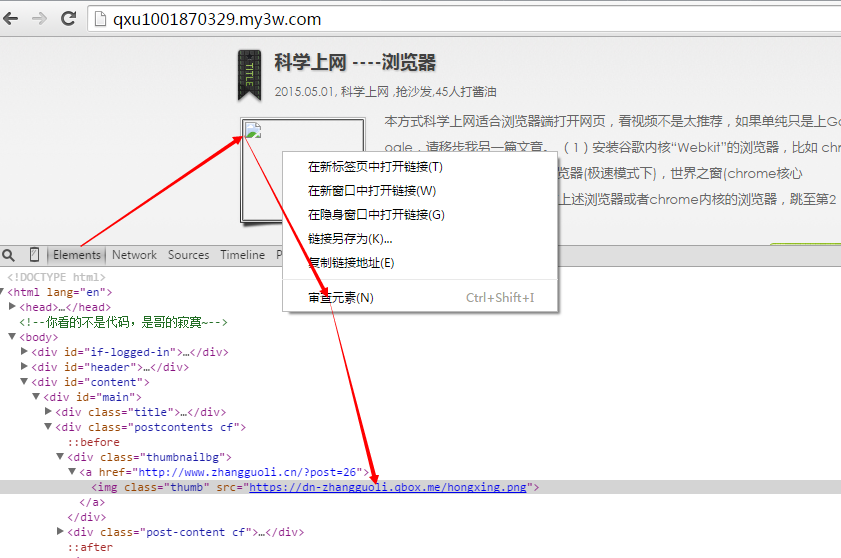 问题背景:有大量的客户反应在本地调试好的网站程序上传到万网的虚拟主机之后就会出现不显示图片的情况 排查工具:chrom浏览器(火狐浏览器也可) 排查的方法如下: 第一步:复制客户的站点临时域名.my3w.com到chrom浏览器中(此时先不要回车访问) 第二步:回车访问客户的站点 第三步:把鼠标放在不能正常显示的图片上,鼠标右键审查元素,这里可以看到图片在服务器上的真实路径 第四步:需要确认的关键点 1、图片是否存在与否 2、图片破图与否 3、图片的路径和名字中大小写字母是否完全吻合(linux系统下) 上一条: 如何检查虚拟主机上301重定向设置 下一条: Linux虚机PHP程序提示“Fatal error: fatal flex scanner internal error-end of buffer ”的分析解决