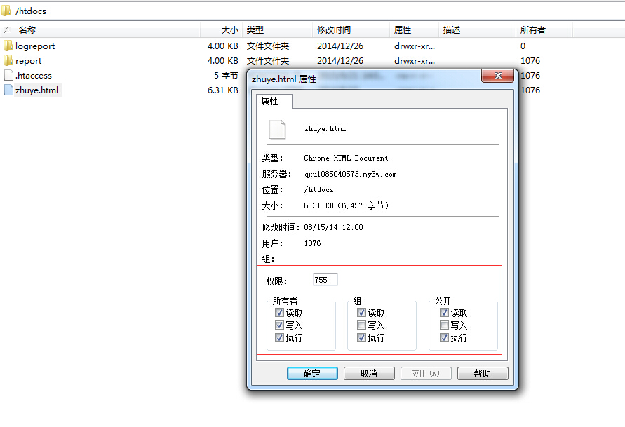 问题场景:Linux系统虚拟主机访问网站提示“500 Internal Server Error”错误。 解决方法: 1、检查htdocs及此文件下的网站首页文件权限正确与否,可以通过ftp连接之后找到需要检查的文件或文件夹,右键点击选择属性就能够查看与修改; 2、查看htdocs目录下是否存在隐藏文件.htaccess,隐藏文件查看方法可以参考http://help.aliyun.com/knowledge_detail/6555026.html?spm=5176.7618386.5.1.rnR9KW,若存在,建议先将此文件重命名或删除后观察一下,一般都是此文件代码有问题导致,需要联系程序开发人员进行处理,修改或删除前建议您对源文件进行备份; 3、若非由.htaccess文件错误导致,需要进一步通过ftp目录下的wwwlog日志中的web访问日志进一步分析错误原因,或开启php的debug模式进行程序调试分析。 上一条: 云虚拟主机访问域名提示“Web服务器被配置为不列出此目录内容”错误的分析解决 下一条: Linux系统虚拟主机网站访问提示“PHP Fatal error: Maximun execution time of 30 ”错误的分析解决