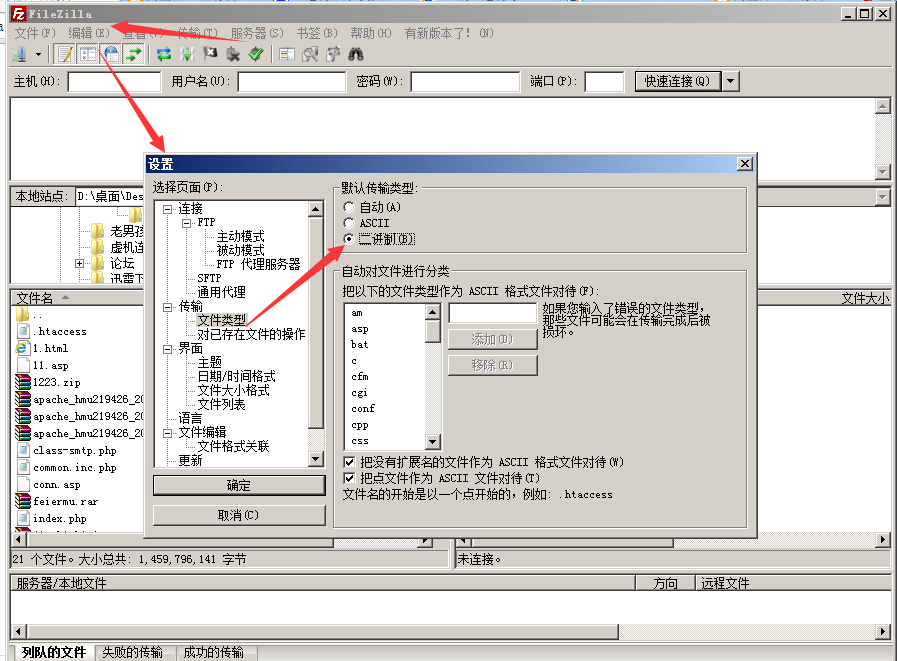 上传网站程序DEDECMS访问乱码解决办法 如果您在上传网站程序DEDECMS的时候,显示乱码,不能成功安装,这时该怎么办呢?这里将为您讲解简单的调整两个方面就可以解决这类问题。 1.首先,切换php的版本为5.5以下 万网的主机可以在主机控制台进行切换php的版本。先登录http://cp.hichina.com ,点击高级环境设置,然后就可以将php版本设置将php版本调整5.5以下,如图所示: 2.然后,将程序上传时选择二进制上传 本文只介绍如何使用filezilla说明文件上传时选择二进制进行上传,如图所示: 上一条: Linux版主机访问网站报错403 Forbidden You don't have permission to access / on this server排查方法 下一条: php网站运行报错