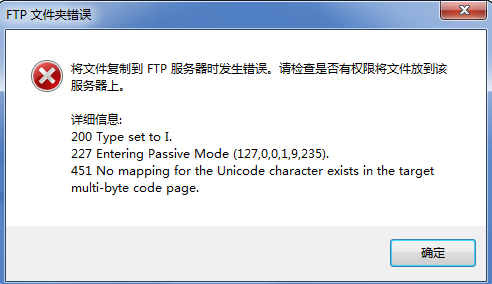 FTP上传时提示“451 No mapping for the Unicode characte”是为什么?