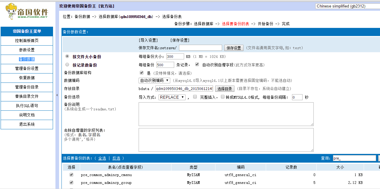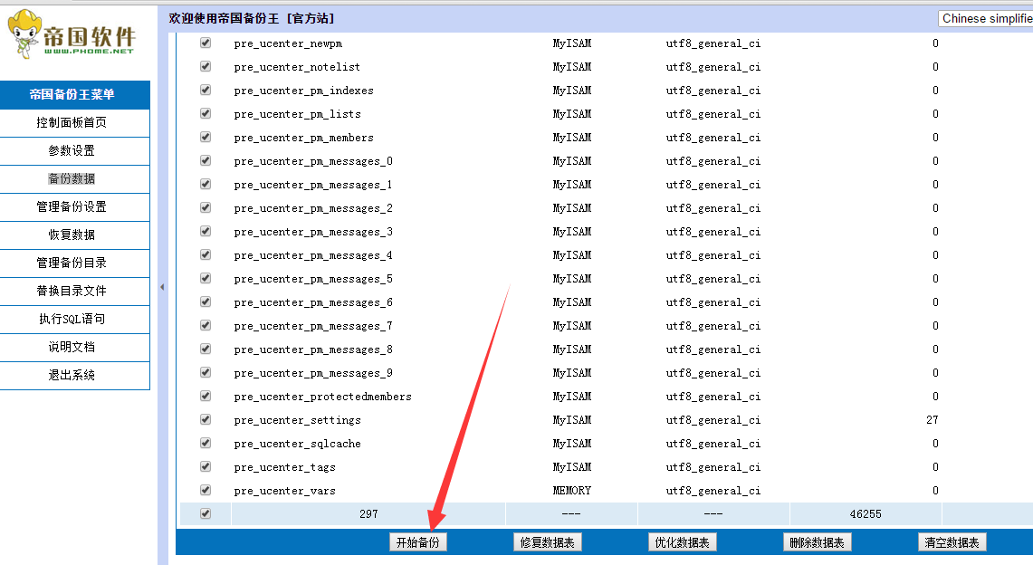 1. 登陆帝国CMS后台面板,点击左侧列表中的【备份数据】选项。