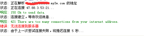 虚拟主机FTP上传出现”421 There are too many connections from your internet address“错误,怎么解决?
