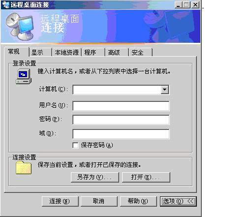 2、点击“选项”依次填入服务器ip地址、用户名和密码后点击连接就可以登陆了。