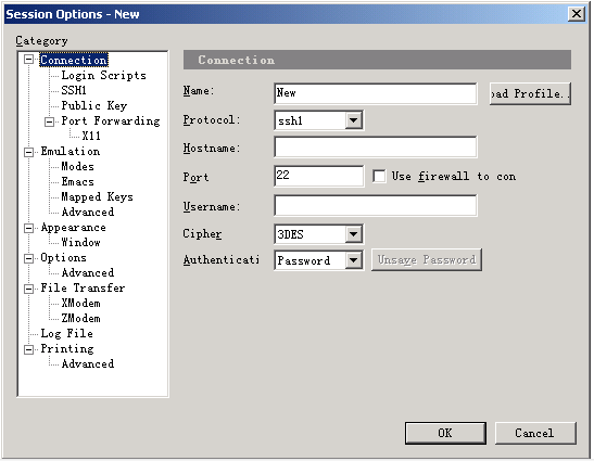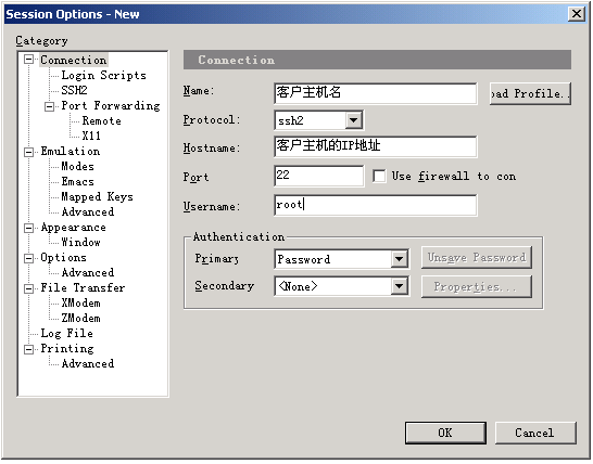 2、然后填写相关的主机信息,需注意,连接方式使用SSH2,如下图所示: