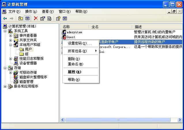 3、选择用户右键帐户“设置密码”。