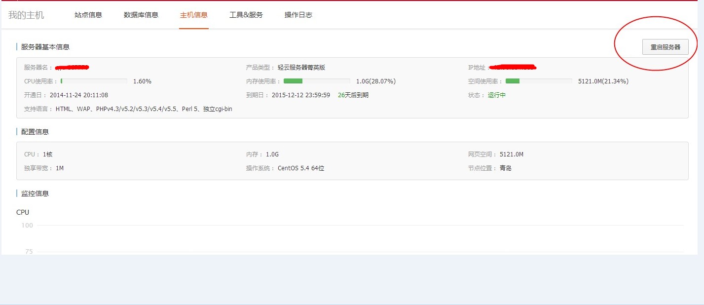 独享版云虚拟主机(轻云服务器)进行重启的方法