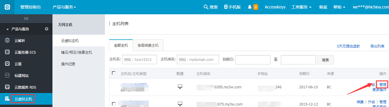 关于云虚拟主机如何通过主机管理控制台重置数据库密码的操作 第一步:首先,登录阿里云管理控制台:home.console.aliyun.com ,选择点击【云虚拟主机】--【管理】,如下图所示: 第二步: 进入主机管理控制台后,选择点击【数据库信息】--【重置密码】,如下图所示: 第三步:这样就能够重置数据库密码。如下图所示: 如果问题还未能解决,请联系售后技术支持。
