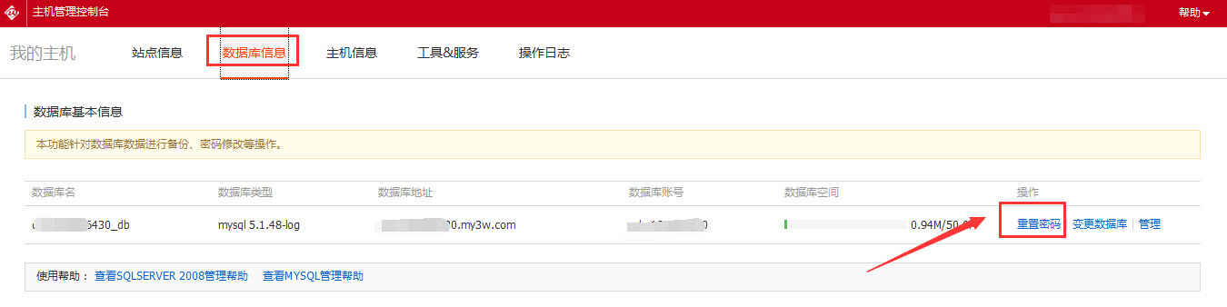 关于云虚拟主机如何通过主机管理控制台重置数据库密码的操作