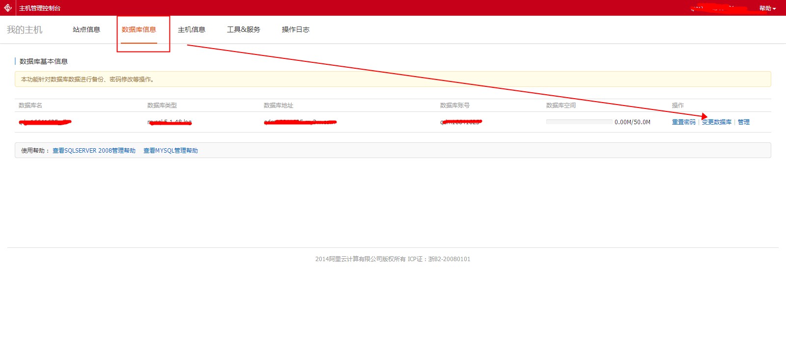 实际上,虚拟主机支持php和asp两种语言的主机,可以通过主机控制台cp.hichina.com,【数据库信息】-->【变更数据库】切换数据库的类型。如下图所示: