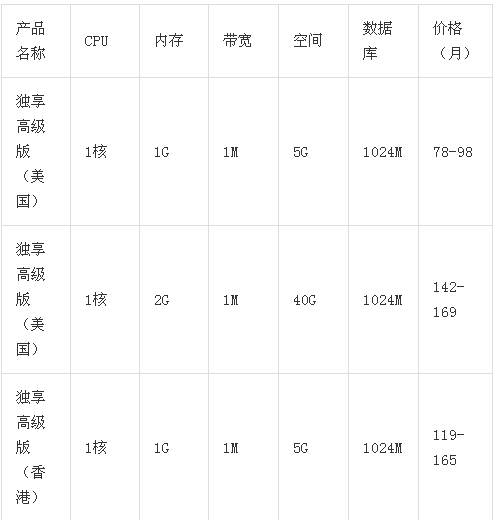 海外机房(香港、美国)独享版虚机一些常见的FAQ 问题1:香港、美国机房独享版虚机有哪些功能? 功能与大陆机房的产品功能一致。 问题2:香港、美国机房的网络情况怎么样? 香港、美国机房的网络为国际带宽,适合海外用户访问。 问题3:香港、美国机房上线的机型有哪些?配置和价格是怎么样的? 香港、美国机房本次只上线两款独享版机型,配置和价格如下图所示: ·问题4:香港、美国机房有共享版虚拟主机吗? 暂时没有,请关注后续的相关通知。 问题5:怎么没有1核0.5G的机型配置? 目前香港、美国机房最低配置为1核1G(对应独享虚机高级版)。 问题6:如果需要更高配置的型号,有没有? 暂时无更高配置的型号,如果一定需要,可以购买ECS,自选配置。 问题7:香港、美国机房的独享版虚机支持备案吗? 海外机房无需备案。 问题8:香港、美国机房的独享版虚机支持免费更换操作系统吗? 不支持。因为不同的操作系统价格不相同,如果购买错误可以退款后再新购产品。 问题9:其他大陆机房(北京,杭州,青岛)的独享版虚机支持更换机房到香港、美国机房吗? 不支持。 问题10:香港、美国机房的独享版虚机支持更换到其他大陆机房(北京,杭州,青岛、深圳)吗? 不支持。如果需要更换可以退款新购服务器。 问题11:大陆机房的虚拟主机可以升级到香港、美国机房的独享版虚机吗? 不支持。 问题12:香港、美国的独享版虚机可不可以支持升级? 支持,但只支持同机房同操作系统的升级。 ·问题13:其他大陆机房的独享版虚机可以升级到香港、美国的独享版虚机吗? 不支持。 ·问题14:香港、美国机房的独享版虚机是否支持购买带宽? 支持。 ·问题15:香港、美国机房的独享版虚机支持业务转移吗? 支持。 ·问题16:香港机房的独享版虚机带宽的价格是怎么样的? 1-5M每M 30元,6M以上每M 100元 上一条: 关于主机产品支持的建站系统的列表 下一条: 虚拟主机是什么