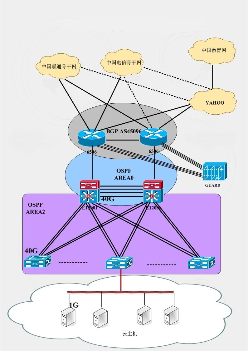 北京和杭州云主机机房网络拓扑图如下图所示:
