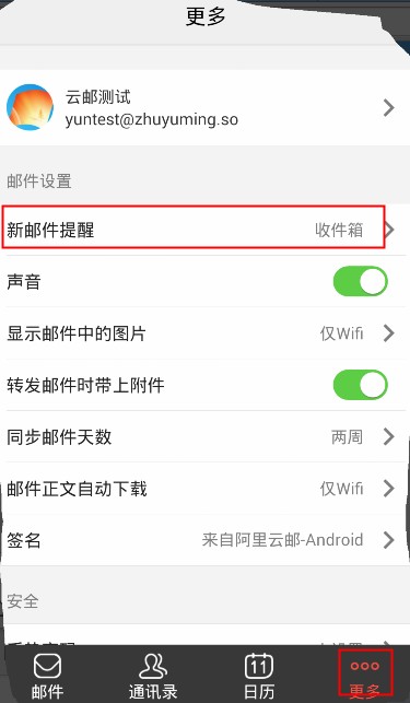 安卓版阿里云邮APP邮件提醒设置的方法简介