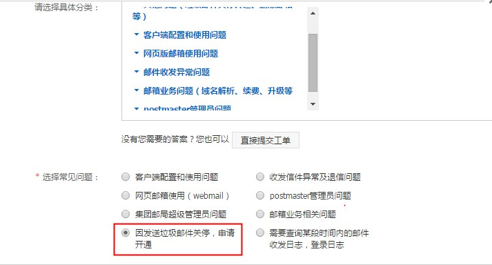 万网企业邮箱因发送垃圾邮件被封禁外发该怎样解封 当前万网企业邮箱用户因发送垃圾邮件造成账号被封禁外发的解封,需要通过发起工单方式申请才能解封。具体操作流程如下所述: 第一步:首先登陆www.net.cn进入https://workorder.aliyun.com/addIndex.htm提交工单页面; 第二步:发起工单的类型请作如下选择:企业邮箱->选择常见问题-->因发送垃圾邮件关停,申请开通; 第三步:提交后进入确认页面时,需要用户勾选服务承诺; 第四步:提交完成后,由万网邮箱反垃圾团队人工进行审核开通; 上一条: 企业邮箱恢复误删除邮件的方法 下一条: 企业邮箱没有发送邮件却收到大量退信的排查
