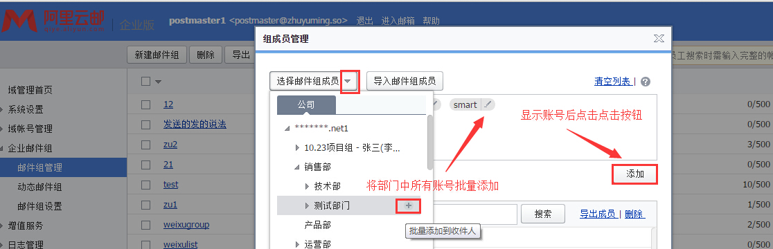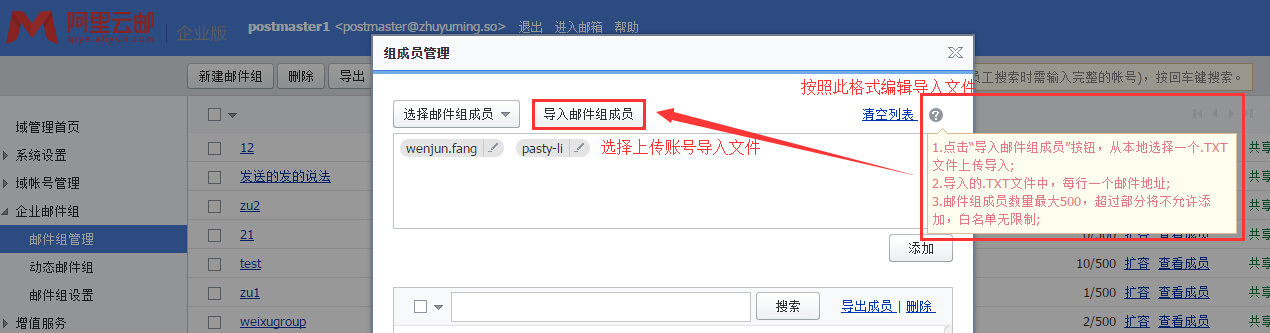 邮件组批量添加多个成员邮箱的方法