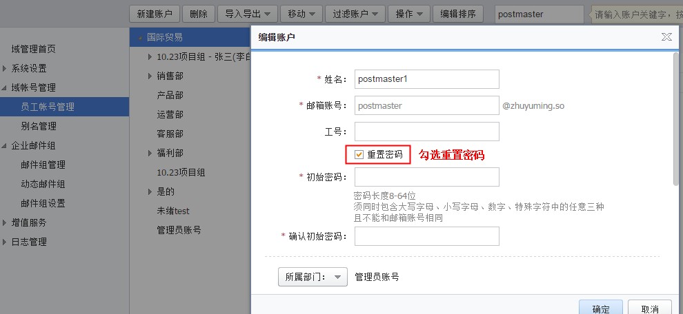 关于企业邮箱postmaster管理员账号如何更改密码