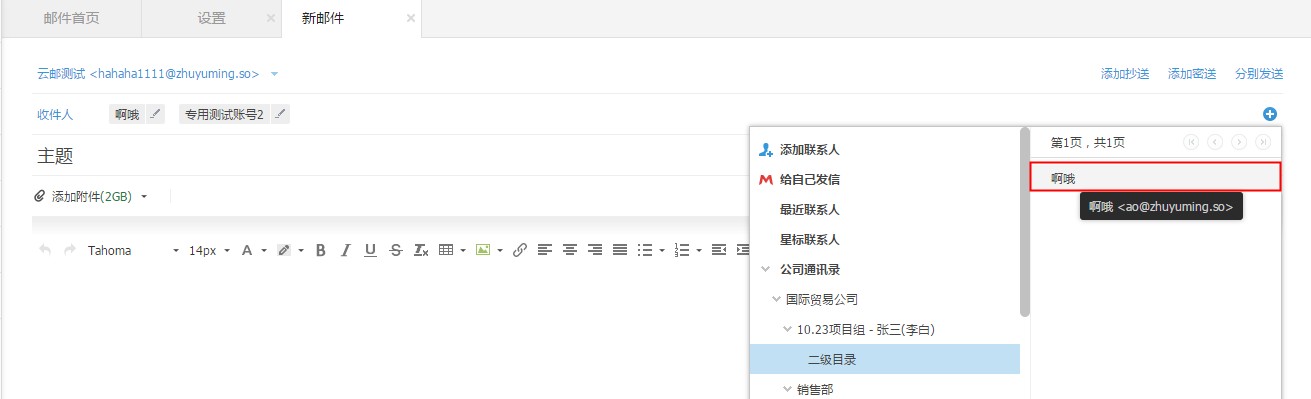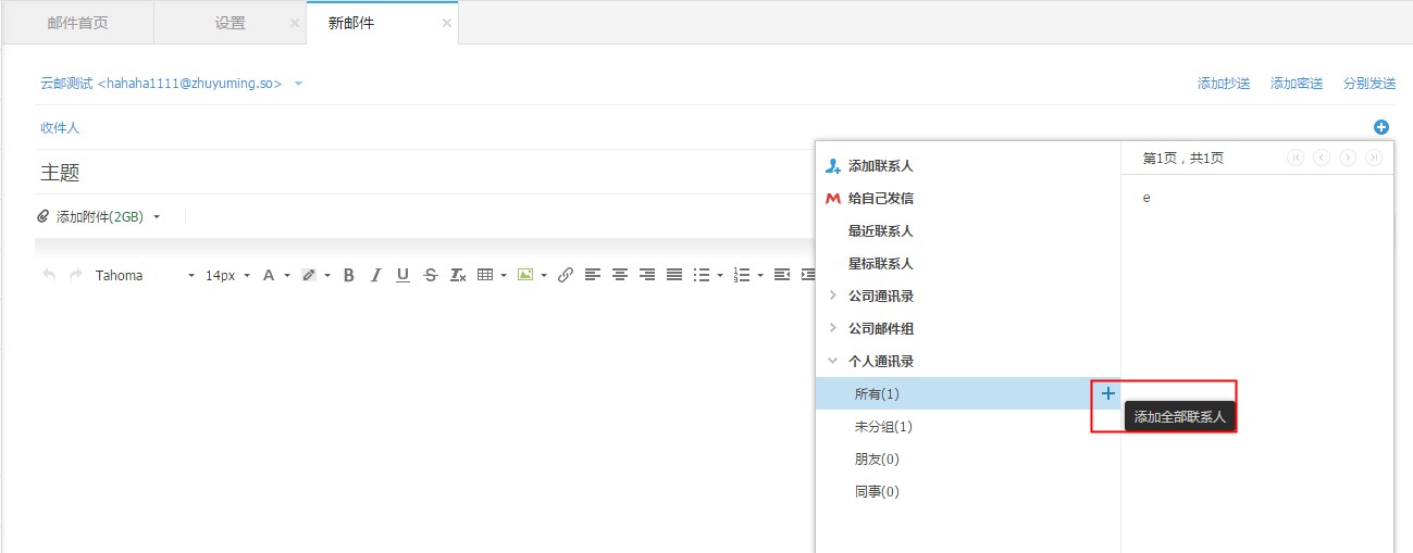 企业邮箱群发邮件功能的介绍 万网企业邮箱可以支持群发邮件功能,webmail中群发时,可以通过下面的方法设置使用: 1、通过“+”【点击批量添加联系人】功能,选择通讯录批量添加多个收件人 1)点击“+”按钮 2)点击选择联系人,就能添加到收信地址栏,如图所示: 3)如果需要对联系组所有联系人群发邮件,可以点击联系组名称后方的+号按钮,添加本组全部联系人,如图所示: 2、编辑新邮件窗口,在“收件人”地址栏中,手动添加多个联系人,如图所示: 3、如果需要对同域内邮箱群发邮件,建议使用企业邮箱的【邮件组】功能,实现快速群发域内部通知邮件。 温馨提醒: 万网企业邮箱主要为用户提供正常业务往来的邮件,对于向外大量群发推广、垃圾邮件的行为不能保证投递率。另外,还请留意每封邮件群发数量不要过多,尽量减少推广邮件群发的投递,可以将需要发送较多数量邮件通过多时间、低频率分别投递的方式进行发送,尽量避免影响使用。 如果问题还未能解决,请联系售后技术支持。 上一条: 域管理首页相关项目 下一条: 企业云邮箱支持发送的附件大小是多少