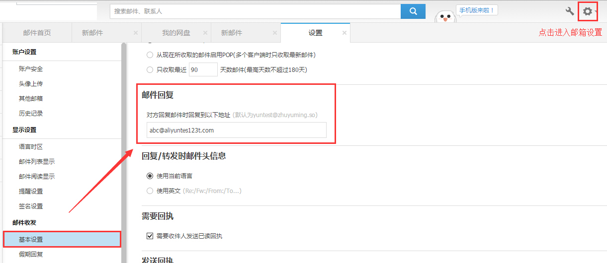 企业邮箱设置邮件回复接收地址的方法 凡是使用企业邮箱发出的邮件,收件人收取后都会直接答复邮件,这个时候显示的回信收信邮箱账号,可以通过发件人对【邮件回复】地址的设置功能自定义回复时的邮箱帐号,当我们不设置时,邮件将自动答复至发信邮箱中;而如果设置后,就将根据设置的收信账号接收回信。 下面详细介绍常见的设置方法: 1)、使用Windows Livemail发送邮件,通过电子邮件账户设置,对账户属性编辑中,常规-->【答复地址】进行设置,如下图所示: 2)、通过企业邮箱Webmail网页版发送邮件,可在【邮箱设置】--【邮件收发】--【基本设置】--【邮件回复】中设置,如下图所示: 3)、使用客户端软件Outlook如2010版本发信,在账户设置-->其他设置-->常规,通过【答复电子邮件】设置,如下图所示: 温馨提醒: a、不同的客户端软件设置位置有所不同,其他软件请在软件设置中查找类似选项。 b、如果遇到接收不到收件人回复的邮件、或者是发出的邮件对方答复提示收信地址有误发送失败的情况,多数都是由于自定义设置的邮件回复接收邮箱地址有误导致的,请参考上面的方法更改正确或者置为空后重试。 如果问题还未能解决,请联系售后技术支持。