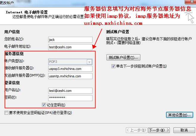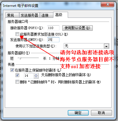 企业邮箱在国外访问缓慢原因及解决 企业邮箱如果在国外网络环境下,有时候会出现webmail或邮件客户端访问速度慢、收发邮件失败问题。通常来说,这种情况都是由于国际间的网络互联不稳定造成的,因为国际间网络情况复杂,出现这种情况很难协调不同国家的网络服务商解决网络问题,但是目前收费版企业邮箱部署有海外节点服务器,如果出现问题可以通过访问海外节点的webmail或者将客户端的服务器设置为海外节点服务器解决这类问题。如图所示: 客户端解决方法,以outlook2010客户端为例设置海外邮箱服务器,如图: imap服务器名称:usimap.mxhichina.com 端口 143 smtp服务器名称:ussmtp.mxhichina.com 端口 25 或者443 pop3服务器名称:uspop3.mxhichina.com 端口 110 注:海外节点服务器不支持ssl加密连接,请勿使用加密连接方式进行配置 网页版访问http://usmail.mxhichina.com/直接登录邮箱海外节点web邮箱服务器进行邮件收发。 温馨提醒:目前企业邮箱海外节点功能只支持收费版企业邮箱,免费版企业邮箱无法使用海外节点服务器登录 上一条: 无上一篇