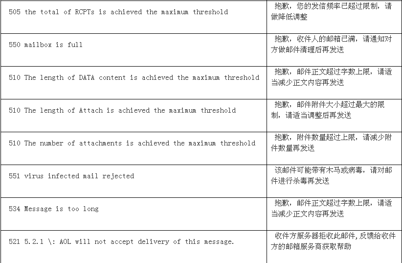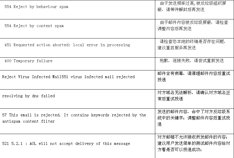 企业邮箱常见错误列表