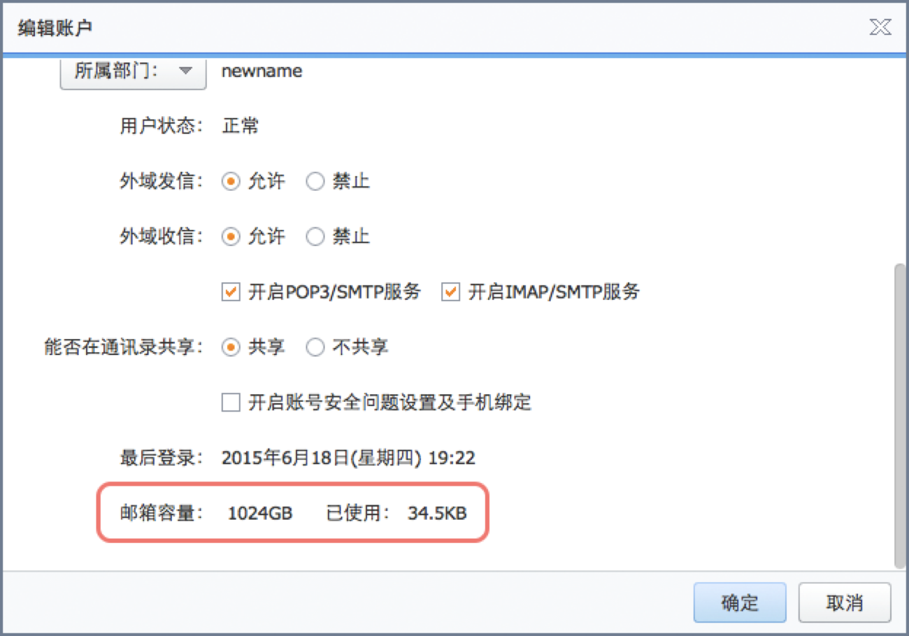 几种无法收取新邮件的解决办法 为什么突然之间我的邮箱无法接收邮件了呢? 情况1: 在您的实际工作中,最普遍的错误就是遇到收信方空间满的情况,造成的提示错误,比如OE的错误信息(关键字)如下:“User's disk quota exceeded”(对方空间已满),webmail会提示:“[ 发送失败 ] 系统忙, 请稍后再试!”。 这时,我们可以及时通知收件人进行检查,具体检查方法如下: A、 检查收件人自己的空间使用状况是否正常。 首先登录webmail,再点击右上角账户名称,再查看收件人邮箱容量的使用情况,如果使用空间已满,则需要收件人对邮箱空间进行清理。 如下图所示: B、检查账号的用户配置。 请使用postmaster邮箱管理员身份先登录webmail,再查看该账号分配容量的使用情况,如果使用容量已满,则需要通知账号所有人进行容量清理。 如下图所示: 当然,不同域用户间邮件往来也会存在收件人空间满的情况,比如退信中关键字信息:“receiptor's mailbox is full(#5.5.4) 或者Quota exceed the hard limit for user”,如果沟通便利,收件人同样可以使用上述方法进行故障排除。 情况2: 如果您是在公司内部同事间,也就是本域用户间投递邮件时,如果出现错误,客户端是可以直接显示的(直接将错误信息反馈给用户的发信端,不会有退信)。那么,我们在第一时间就能够得到具体的错误信息。根据本域投递以及报错的这个特点以及公司内部沟通的便利条件,我们可以充分利用这些信息对问题进行快速处理。省去在线提交问题的等待,从而提高您的工作效率。