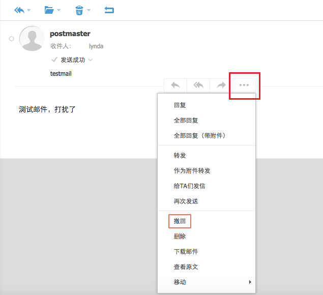 注:但只能是收件人也是用万网云平台的邮箱用户,并且还未读的邮件。并且只能撤销web邮箱里的邮件。