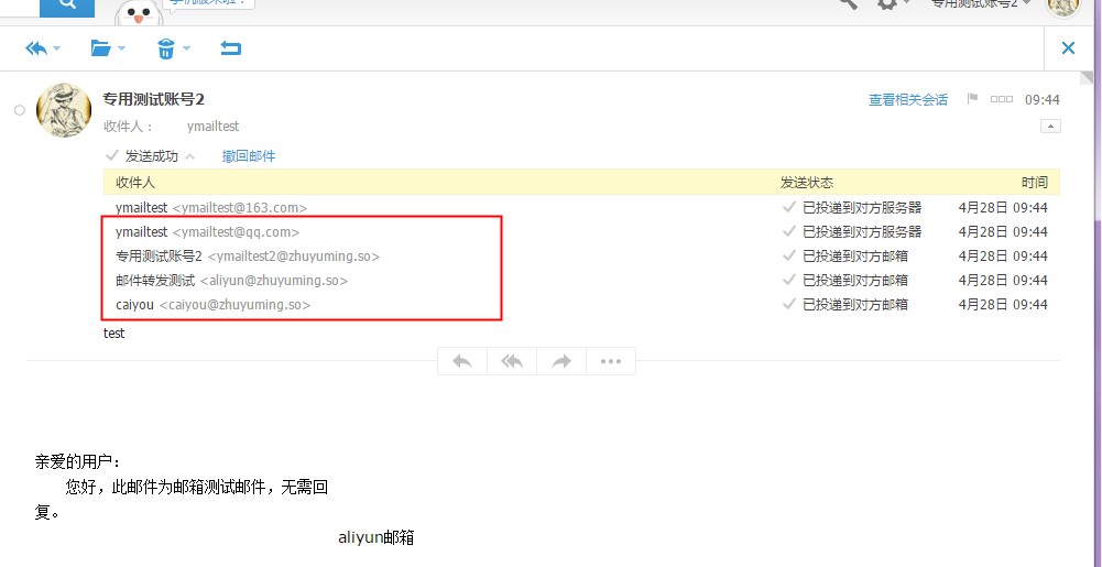在发件人已发送文件夹中,点击所发送的此邮件,后再点开邮件发送的状态,下拉可以看到此邮件实际的收件地址。