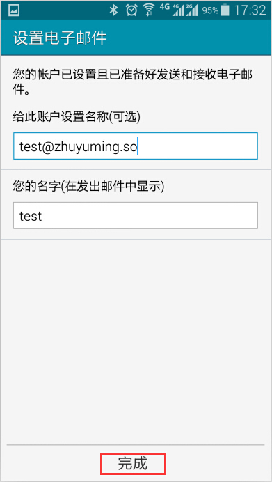 企业邮箱在Android(安卓)系统手机上POP3/IMAP协议如何设置 我们已经推出了自己研制的手机客户端,具备高兼容性,不需需配置,输入企业邮箱地址和密码直接登录使用。了解详情》 直接扫码下载,如下所示: 这里用以三星(系统版本4.4.2)为例,介绍下使用安卓系统自带的客户端如何设置pop/imap协议方式方法。 以下我们将使用test@zhuyuming.so 为测试案例,请您操作时更换成您自己的邮箱账号和信息。 注:由于各安卓系统的手机品牌不同,可能应用程序的名称不一样,但基本操作方法是一致的。 1、打开安卓手机的应用程序,选择“邮件”,进入至邮箱设置页面。在选择邮件提供商处点击“其他”,如图所示: 2、填写邮箱的email地址及邮箱密码,建议点击“手动配置”,如图所示: 3、填写接收、发送服务器信息,如下图: 1)、 根据您的使用习惯,选择POP3或者是IMAP,如图所示: 2)、 下面以填写pop3协议设置为例,填写接收服务器地址及用户名: 请将邮件地址和用户名填写完整email地址。 POP3协议设置 接收邮件服务器:pop3.mxhichina.com或pop3.您的域名,端口110 发送邮件服务器:smtp.mxhichina.com或smtp.您的域名,端口25 IMAP协议设置 接收邮件服务器:imap.mxhichina.com,端口143 发送邮件服务器:smtp.mxhichina.com或smtp.您的域名,端口25 推荐您使用SSL加密连接,更加安全,使用时请注意加密端口465、995、993是否已在您的本地客户端和网络中开放。如图所示: 3)、 填写smtp用户名,请完整填写email地址,如图所示: 4、填写姓名后点击“结束设置“,完成整个安卓手机客户端设置。如图所示: 5、设置完成后,如您邮箱的收件箱中保存邮件,系统开始自动收取。如图所示: