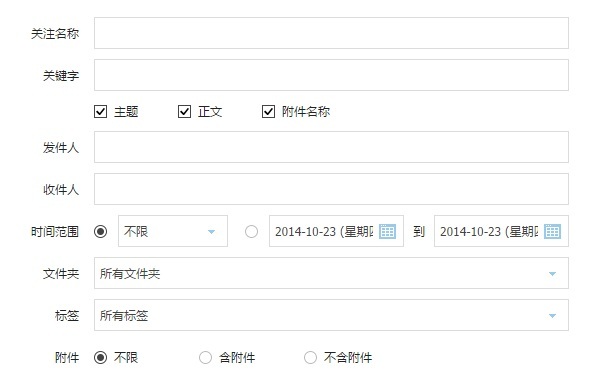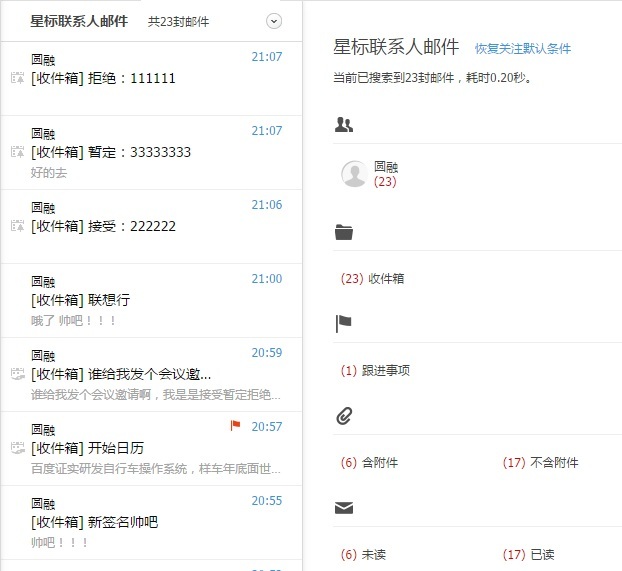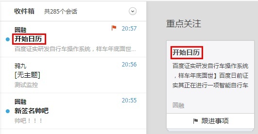什么是重点关注 什么是关注? 重点关注是指着重对重要的邮件和重要的人进行智能整理和规划,集中管理,高效工作,从冗余的邮件中抽离出来。 如何使用? 1、重点关注主要分为跟进事项,星标联系人及自定义关注。如图所示: 2、将邮件点击标记为跟进后,自动同步进行跟进事项,方便每日查看。如图所示: 3、将联系人添加星标后可以自动同步星标联系人邮件,并且可以分类统计。如图所示: 4、自定义关注可以在高级中自行设置关注条件,例如:发件人、关键字、时间、主题、标签等。如下所示: 上一条: 日历简介 下一条: 企业邮箱使用网易邮箱大师客户端怎样设置