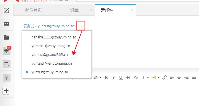 企业邮箱设置发件人邮箱的方法 企业邮箱如果设置有【邮箱别名】、【域别名】,同一个邮箱同时拥有多个邮箱账号名称;以及设置【其他邮箱】后,如需要以不同的邮箱账号地址发送邮件,可以根据以下方法通过使用需要选择设置: 方法1、进入邮箱设置--【邮件收发】--【基本设置】,然后选择“默认发件邮箱”,保存后就可以成功设置默认的发件邮箱地址。如图所示: 按照这样设置后,默认发信将统一使用所选择的账号作为发信邮箱,如果需要手动对个别邮件更改,可使用方法2. 方法2、编辑写信时,点击邮箱地址后面的三角按钮,在下拉框中选择发信邮箱地址。如图所示: 如问题未解决,请联系反馈售后技术支持。 上一条: 动态邮件组和邮件组有什么区别以及怎样配置 下一条: 企业邮箱的标准模式和会话模式有什么不同
