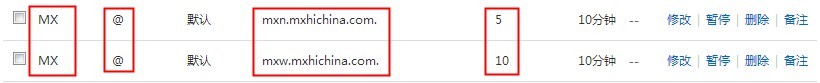 MX、CNAME以及TXT记录的名词是什么意思 MX全称为mail exchanger,主要用于电子邮件系统发邮件时根据收信人的地址后缀来定位邮件服务器。比如说,当有人发邮件给“vincen@example.com”时,系统将对“example.com”进行DNS中的MX记录解析。如果MX记录存在,系统就根据MX记录的优先级,将邮件转发到与该MX相应的邮件服务器上。 万网企业邮箱要求的MX记录设置方法如下所示: 邮件服务器名:mxw.mxhichina.com. 优先级:10 邮件服务器名:mxn.mxhichina.com. 优先级:5 增加邮件域CNAME记录的原因是什么? CNAME就是别名记录。增加CNAME记录,您可以使用“mail.企业域名”这种形态来访问企业邮箱登录页面。 例如mail.hichina.com.别名:mail (特别提醒,这里只能用mail,不可以用其他内容) 如图所示,当您提交验证以后,系统会自动进行校验,这个过程通常会在2个小时左右,请您耐心等待。 增加邮件域TXT记录的原因? 增加TXT记录,是完成发送者身份的鉴别。业界一般称之为SPF,是(Sender Policy Framework)的缩写,这是一种以IP地址认证电子邮件发件人身份的技术,是非常高效的垃圾邮件解决方案。接收邮件方会首先检查域名的SPF记录,来确定发件人的IP地址是不是被包含在SPF记录里面,如果在里面,就认为这是一封正确的邮件,如果不在里面,就会认为是一封伪造的邮件进行退回。 SPF是通过域名的TXT记录来进行设置的。为了提升域名邮箱发送外域(阿里云邮箱以外的邮箱,例如QQ邮箱)邮件的成功率,建议您给自己的域名设置一条TXT记录来避免这种情况。 当您提交验证以后,系统会自动进行校验,这个过程通常会在2个小时左右,请您耐心等待。