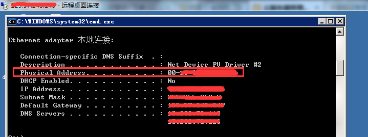 Windows服务器可以通过ipconfig /all查看ECS的MAC地址