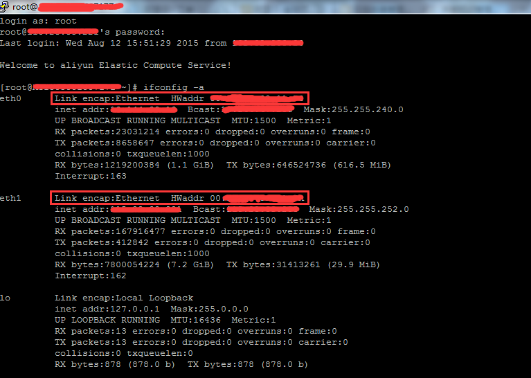 linux系统可以通过ifconfig -a命令查看服务器MAC地址