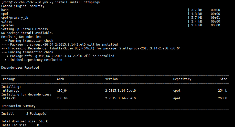 如何在Linux与Windows主机之间挂载ntfs格式云盘 Windows系统下常用的文件系统是ntfs、FAT32等,Linux系统常见的文件系统类型是xfs、ext3、ext4等,这个是一个实例来实现云盘可以在不修改文件系统的前提下可以实现在Linux和windows系统之间相互挂载,使用的文件系统类型是ntfs 操作的前提:云盘必须和ECS的Linux与Windows主机在同一个账号和同一个城市才可以实现操作,目前支持的磁盘类型是ntfs。 一、格式化磁盘(这个在Linux系统上操作) 1、安装组件使Linux系统支持ntfs文件类型 #yum -y install ntfsprogs