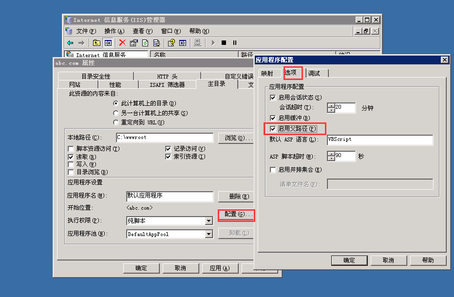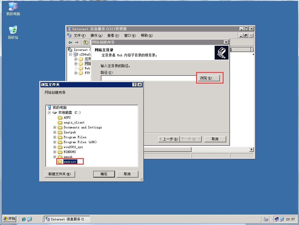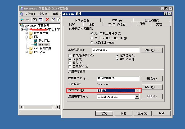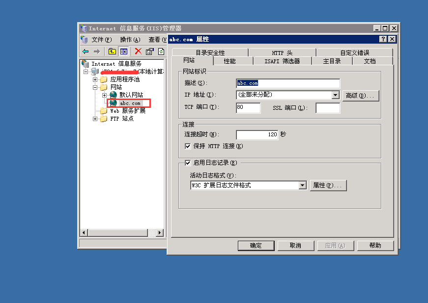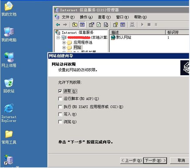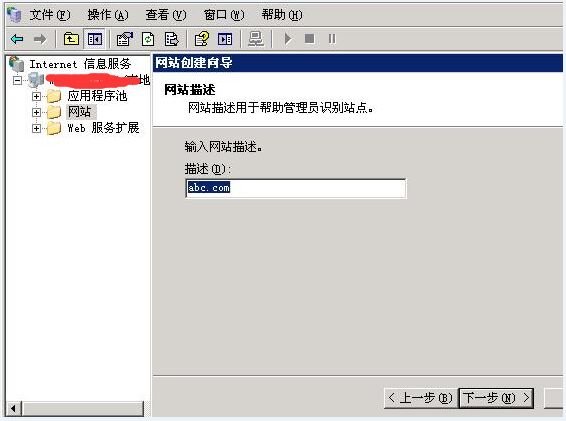 ECS Windows 2003 IIS如何创建站点 创建步骤如下: 1、首先需要建立一个目录作为网站目录,用于存放网站程序,以网站目录创建到C盘为例,如下图所示: 2、然后打开IIS,右击网站选项,新建一个网站,出现如图所示: 再点击“下一步”,出现如图,输入站点描述,可以用域名作为描述内容,方便以后对多个站点的清晰化管理: 在网站IP地址里输入您的ECS的IP地址,网站的主机头建议用户不要留空,以防止他人的恶意解析,建议您的网站最好不要设置成IP访问,最好设置成域名访问: 继续下一步,输入网站程序存放的路径,也就是最初的时候所建立的文件目录: 继续下一步,设置网站访问权限,可以用系统默认的: 点击下一步,网站创建完成,如图所示: 3、网站属性的设置: 右击新建的网站,选择属性选项: 设置网站标示,可以为您的网站增加多个域名绑定,如图所示,选择“高级”选项,点击添加:输入IP,输入要绑定的域名,点击确定: 设置网站“主目录”选项,执行权限选择“纯脚本”,如下图所示: 应用程序配置,点击“配置”选项,进入应用程序配置选择“选项”菜单,选择“启用父路径”,点击确定,完成: 网站文档设置,把网站默认首页文档添加上,并上移至最顶端,点击确定,完成。 至此,IIS设置就以及全部完成,在浏览器上进行测试即可。 上一条: ECS iis如何配置多个网站