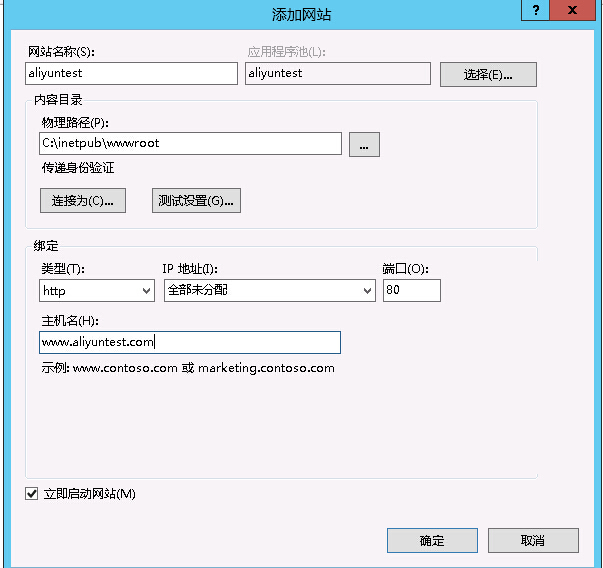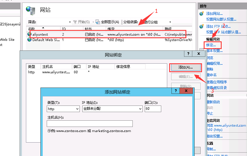 Windows 2012 iis如何添加站点绑定域名 步骤如下所示: 1、首先需要打开iis管理器,展开节点,在网站处点击鼠标右键一下,选择添加网站。 2、然后填写网站的信息,包括网站名称,路径,和主机名(域名)的信息,再点击确定创建下站点就可以了。 3.创建好的站点可以参考下图,点击下站点,在右侧选择下绑定,之后点击下添加,可以给站点添加绑定下其他的域名。如下图所示: 上一条: IIS与Apache如何绑定中文域名