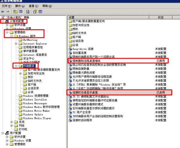 如何解决ECS Windows Server 2003远程桌面壁纸无法修改 问题描述: ECS Windows Server 2003系统远程桌面连接后,发现无法修改壁纸,【背景】选项是灰色的,如下图所示: 问题解决: 出现该问题是由于远程桌面相关显示,受Windows Server 2003终端服务的默认组策略控制。 用户可以通过如下办法解决: 1. 首先【运行】,输入【gpedit.msc】,打开“组策略”; 2. 定位到:【本地计算机策略】 – >【计算机配置】 – >【管理模板】 – > 【Windows组件】 – >【终端服务】,如下图所示: 3. 然后从右侧列表中,修改【总是显示桌面连接】为“启用”。 修改【强制移除远端桌面壁纸】为“已禁用”。 4. 然后关闭组策略,使用远程桌面重新登录,此步骤操作完成后,就可以自定义桌面壁纸了。 如果用户重新通过mstsc远程桌面连接到服务器后还是无法设置,请检查【远程桌面】->【体验】->【桌面背景】选项,需要检查状态处于勾选时才能进行设置。 如问题还未解决,请联系售后技术支持。