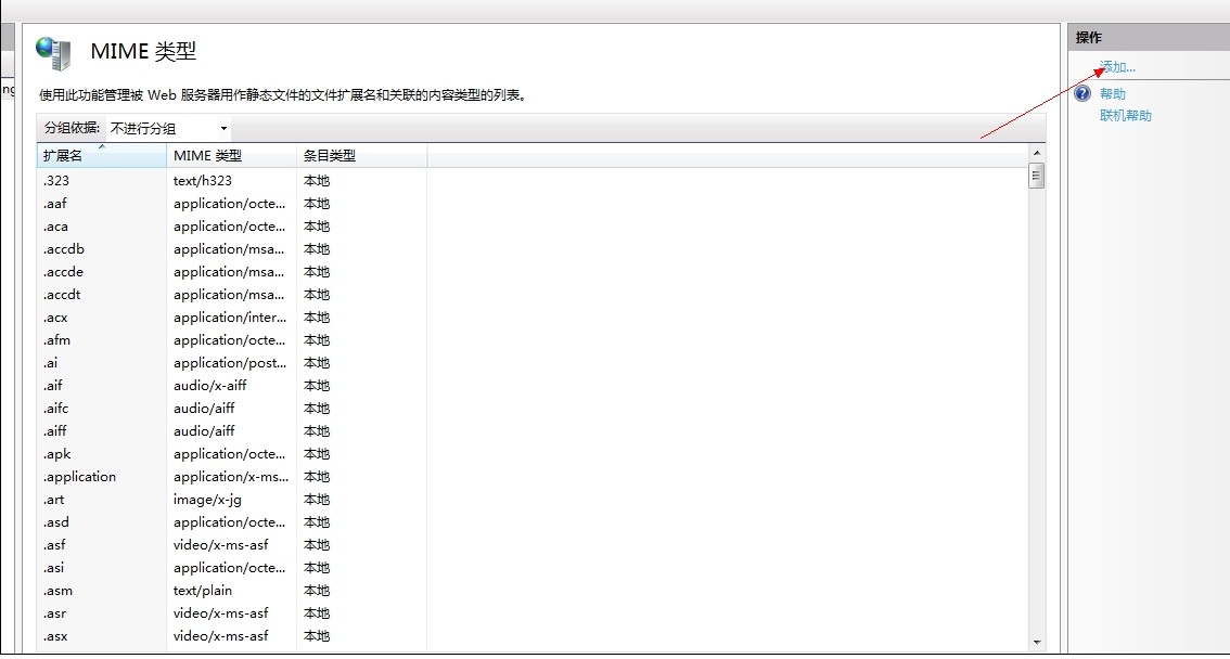 ECS Windows 如何通过IIS配置网站支持flv,mp4等文件访问读取 通过IIS配置的网站,如果需要播放一些例如flv、mp4的特殊文件,需要在站点配置中添加自定义MIME类型,以下介绍的是不同系统的操作步骤。 Windows 2008/2012系统操作步骤: 打开IIS管理器,选择要设置网站,在右侧打开MIME类型选项,然后点击添加(以apk文件的MIME类型添加举例),如下图所示: Windows 2003系统操作步骤如下所示: 首先单击【开始】--【程序】--【管理工具】--【IIS管理器】,逐步展开【本地计算机】、【网站】,在网站上右击,选择【属性】,然后单击【HTTP头】--【MIME类型】,再单击【新建】按钮(以flv文件的MIME类型举例),在【扩展名】框内输入“.flv”,【MIME类型】框中输入“flv-application/octet-stream”,然后点击确定就可以了。 注:常见的文件MIME类型如下所示: 3gp video/3gpp aab application/x-authoware-bin aam application/x-authoware-map aas application/x-authoware-seg ai application/postscript aif audio/x-aiff aifc audio/x-aiff aiff audio/x-aiff als audio/X-Alpha5 amc application/x-mpeg ani application/octet-stream asc text/plain asd application/astound asf video/x-ms-asf asn application/astound asp application/x-asap asx video/x-ms-asf au audio/basic avb application/octet-stream avi video/x-msvideo awb audio/amr-wb bcpio application/x-bcpio bin application/octet-stream bld application/bld bld2 application/bld2 bmp application/x-MS-bmp bpk application/octet-stream bz2 application/x-bzip2 cal image/x-cals ccn application/x-cnc cco application/x-cocoa cdf application/x-netcdf cgi magnus-internal/cgi chat application/x-chat class application/octet-stream clp application/x-msclip cmx application/x-cmx co application/x-cult3d-object cod image/cis-cod cpio application/x-cpio cpt application/mac-compactpro crd application/x-mscardfile csh application/x-csh csm chemical/x-csml csml chemical/x-csml css text/css cur application/octet-stream dcm x-lml/x-evm dcr application/x-director dcx image/x-dcx dhtml text/html dir application/x-director dll application/octet-stream dmg application/octet-stream dms application/octet-stream doc application/msword dot application/x-dot dvi application/x-dvi dwf drawing/x-dwf dwg application/x-autocad dxf application/x-autocad dxr application/x-director ebk application/x-expandedbook emb chemical/x-embl-dl-nucleotide embl chemical/x-embl-dl-nucleotide eps application/postscript eri image/x-eri es audio/echospeech esl audio/echospeech etc application/x-earthtime etx text/x-setext evm x-lml/x-evm evy application/x-envoy exe application/octet-stream fh4 image/x-freehand fh5 image/x-freehand fhc image/x-freehand fif image/fif fm application/x-maker fpx image/x-fpx fvi video/isivideo gau chemical/x-gaussian-input gca application/x-gca-compressed gdb x-lml/x-gdb gif image/gif gps application/x-gps gtar application/x-gtar gz application/x-gzip hdf application/x-hdf hdm text/x-hdml hdml text/x-hdml hlp application/winhlp hqx application/mac-binhex40 htm text/html html text/html hts text/html ice x-conference/x-cooltalk ico application/octet-stream ief image/ief ifm image/gif ifs image/ifs imy audio/melody ins application/x-NET-Install ips application/x-ipscript ipx application/x-ipix it audio/x-mod itz audio/x-mod ivr i-world/i-vrml j2k image/j2k jad text/vnd.sun.j2me.app-descriptor jam application/x-jam jar application/java-archive jnlp application/x-java-jnlp-file jpe image/jpeg jpeg image/jpeg jpg image/jpeg jpz image/jpeg js application/x-javascript jwc application/jwc kjx application/x-kjx lak x-lml/x-lak latex application/x-latex lcc application/fastman lcl application/x-digitalloca lcr application/x-digitalloca lgh application/lgh lha application/octet-stream lml x-lml/x-lml lmlpack x-lml/x-lmlpack lsf video/x-ms-asf lsx video/x-ms-asf lzh application/x-lzh m13 application/x-msmediaview m14 application/x-msmediaview m15 audio/x-mod m3u audio/x-mpegurl m3url audio/x-mpegurl ma1 audio/ma1 ma2 audio/ma2 ma3 audio/ma3 ma5 audio/ma5 man application/x-troff-man map magnus-internal/imagemap mbd application/mbedlet mct application/x-mascot mdb application/x-msaccess mdz audio/x-mod me application/x-troff-me mel text/x-vmel mi application/x-mif mid audio/midi midi audio/midi mif application/x-mif mil image/x-cals mio audio/x-mio mmf application/x-skt-lbs mng video/x-mng mny application/x-msmoney moc application/x-mocha mocha application/x-mocha mod audio/x-mod mof application/x-yumekara mol chemical/x-mdl-molfile mop chemical/x-mopac-input mov video/quicktime movie video/x-sgi-movie mp2 audio/x-mpeg mp3 audio/x-mpeg mp4 video/mp4 mpc application/vnd.mpohun.certificate mpe video/mpeg mpeg video/mpeg mpg video/mpeg mpg4 video/mp4 mpga audio/mpeg mpn application/vnd.mophun.application mpp application/vnd.ms-project mps application/x-mapserver mrl text/x-mrml mrm application/x-mrm ms application/x-troff-ms mts application/metastream mtx application/metastream mtz application/metastream mzv application/metastream nar application/zip nbmp image/nbmp nc application/x-netcdf ndb x-lml/x-ndb ndwn application/ndwn nif application/x-nif nmz application/x-scream nokia-op-logo image/vnd.nok-oplogo-color npx application/x-netfpx nsnd audio/nsnd nva application/x-neva1 oda application/oda oom application/x-AtlasMate-Plugin pac audio/x-pac pae audio/x-epac pan application/x-pan pbm image/x-portable-bitmap pcx image/x-pcx pda image/x-pda pdb chemical/x-pdb pdf application/pdf pfr application/font-tdpfr pgm image/x-portable-graymap pict image/x-pict pm application/x-perl pmd application/x-pmd png image/png pnm image/x-portable-anymap pnz image/png pot application/vnd.ms-powerpoint ppm image/x-portable-pixmap pps application/vnd.ms-powerpoint ppt application/vnd.ms-powerpoint pqf application/x-cprplayer pqi application/cprplayer prc application/x-prc proxy application/x-ns-proxy-autoconfig ps application/postscript ptlk application