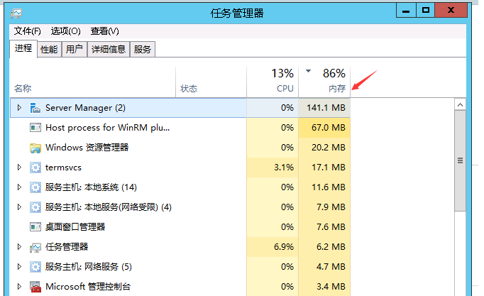 如何解决ECS Windows 2012安装.Net3.5提示“储存空间不足,无法处理此命令” 用户在Windows Server 2012上安装.Net3.5提示“储存空间不足,无法处理次命令”报错如下图所示: 出现这种错误通常不是硬盘存储空间不足导致的,而是内存不足所导致的,用【任务管理器】查看一下当前服务器的内存使用情况。如果内存使用较高,用户可以手动关闭一些不用的进程,释放一下服务器的内存,然后再重新安装.Net3.5即可。