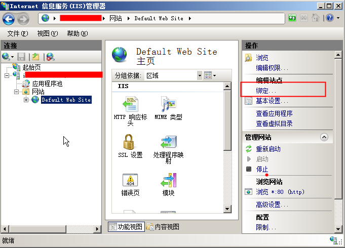 2、然后选择需要修改的站点,点击绑定。如下图所示:
