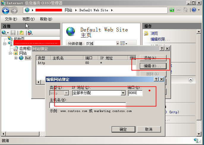 3、然后点击编辑,后侧的端口号,如,改为8080,最后在web端进行测试,localhost后加:8080,访问测试成功就可以了。
