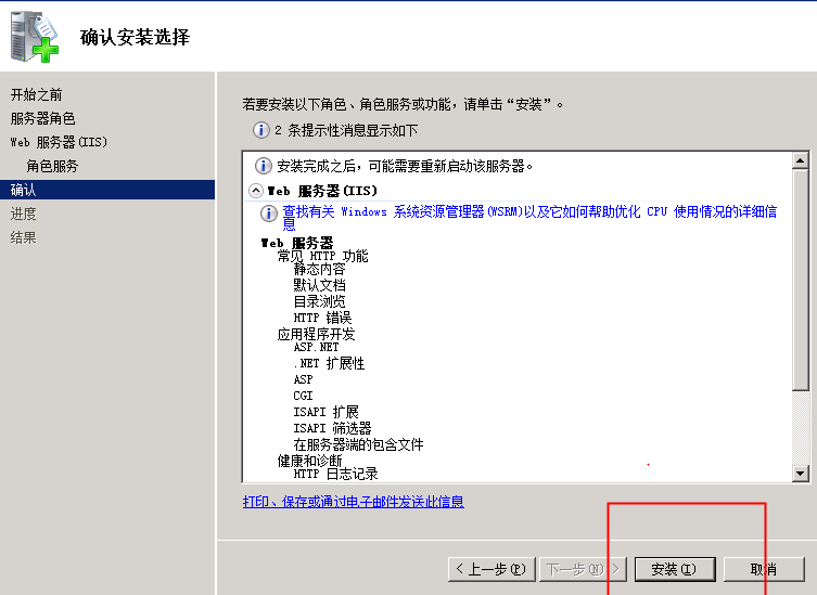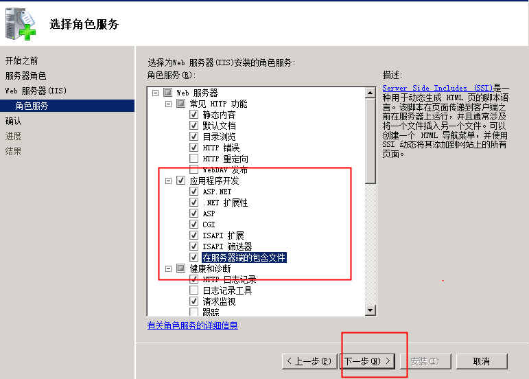 3、然后选择对应的asp的相应服务,点击下一步。之后点击安装,即可完成安装。