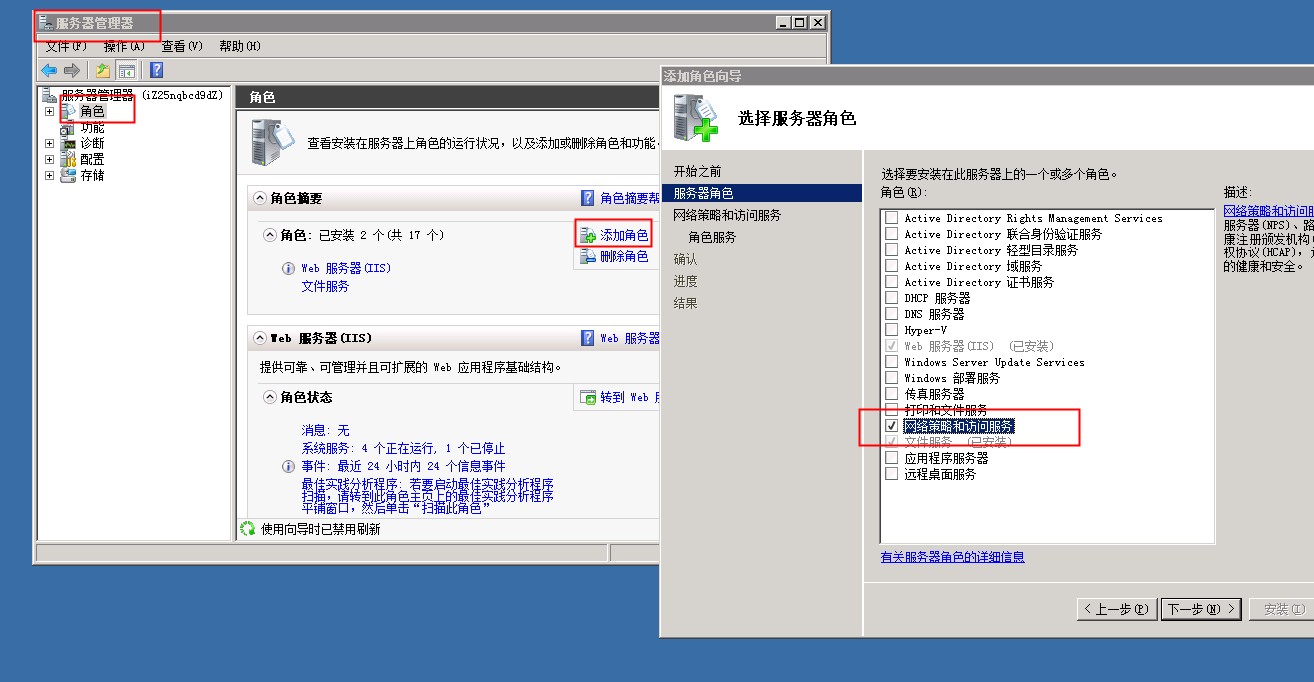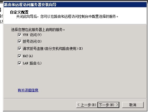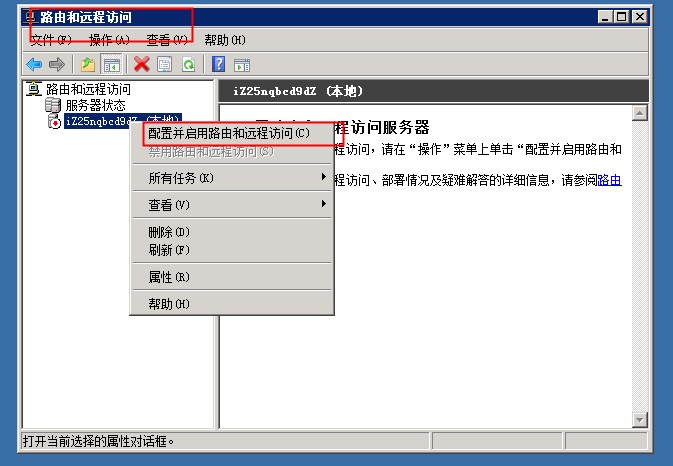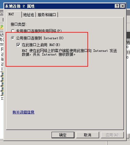 ECS 纯内网ECS如何通过VPN连接到有公网的服务器实现访问公网 本文主要介绍的是在Windows Server 2008上搭建VPN, 其他内网的机器可以拨号连接该VPN,连接外网。 实验环境: 服务器系统:Windows server 2008 客户机系统:Windows server 2008 服务器双网卡,可上外网,内网卡IP: 10.44.161.21 客户机系统只有内网网卡, IP地址:10.171.40.81 实验结果: 客户机拨入VPN访问服务器,通过VPN服务器访问互联网。 一、VPN服务的安装 首先要打开服务器管理器-添加角色, 勾选网络策略和访问服务 勾选需要安装的服务:如下图所示: 二、VPN服务的配置 当安装完路由和远程访问默认是禁用的,右击路由和远程访问-配置并启动路由与远程访问,如下图所示: 然后展开以后-右击NAT-新增接口, 选择本地接口-本地连接2(连接互联网),并在此接口上启用NAT, (本地连接2是公网网卡)如下图所示: 右击NAT-新增接口-本地连接-专用接口?(连接虚拟专用网络)(本地连接是内网网卡), 右击路由和远程访问-属性-IPv4-静态地址池(用于指定客户机拨入VPN后,分配的IP范围), 创建一个名为sky的VPN用户-属性-允许拨入,如下图所示: 至此VPN创建完成 下面使用客户机测试 首先需要创建连接。 输入VPN的IP地址,这里输入VPN服务器的内网IP 配置完成之后,点击连接VPN, 访问外网测试,如下图所示: 至此 Windows Server 2008 VPN的服务端与客户端配置已经完成。