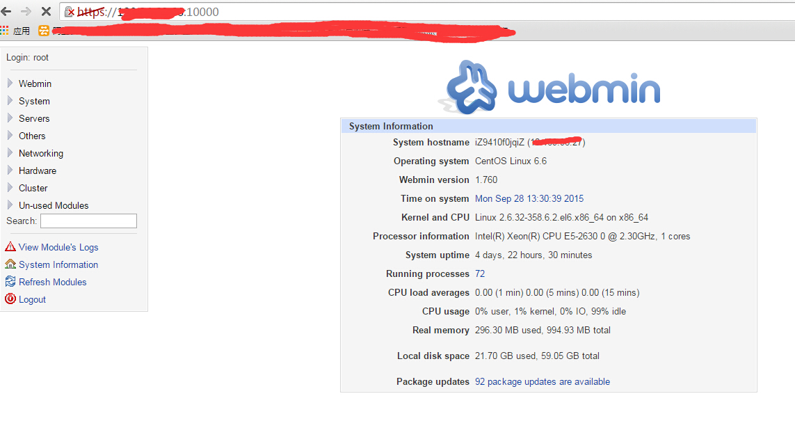 Webmin是目前功能最强大的基于Web的Unix系统管理工具。管理员通过浏览器访问Webmin的各种管理功能并完成相应的管理动作,对于那些刚刚接触linux不久的人特别是那些习惯使用windows图形化界面,认为linux复杂的用户而言,linux复杂的命令使他们望而却步 有了图形管理工具Webmin就不用使用复杂的命令手工修改复杂文件了 本文介绍怎样在阿里云的ECS上YUM安装webmin 阿里云ECS默认的yum镜像中无此安装包,执行yum安装会报错,如截图所示: 需要配置yum来支持yum安装webmin 1)配置webmin库文件 vim /etc/yum.repos.d/webmin.repo [Webmin] name=Webmin mirrorlist=http://download.webmin.com/download/yum/mirrorlist enabled=1 保存 2)使用yum安装webmin yum -y install webmin 安装的时候会出现无法Header V3 DSA/SHA1 Signature 执行导入密钥后再安装就行了 rpm --import http://www.webmin.com/jcameron-key.asc 到此会安装以下两个包: Perl-Net-SSleasy和web.noarch安装包,Perl-Net-SSleasy是使webmin支持加密传输 webmin的启动和关闭 /etc/init.d/webwin start|stop 默认监听的是10000 查看是否启动使用netstat -ntulp | grep 10000(webmin默认监听的是10000端口) 至此安装完毕 使用yum安装的过程中不会让你输入密码 使用/usr/libexec/webmin/changepass.pl /etc/webmin root redhat root(用户名 ,redhat是密码) 安装完毕后客户端即可访问 至此,在阿里云ECS上配置webmin已完毕